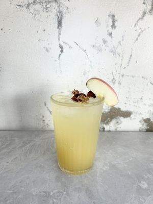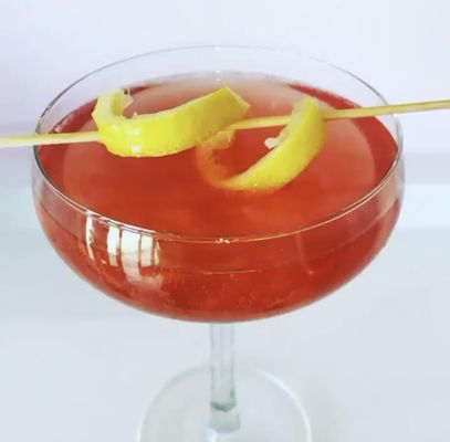 A peach-pink blend of pink gin, peach schnapps, cranberry juice, lemon juice & lemonade