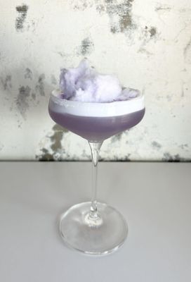 Sweet and candy-inspired - triple sec, alize, raspberry syrup topped with lemonade and grape fairy floss