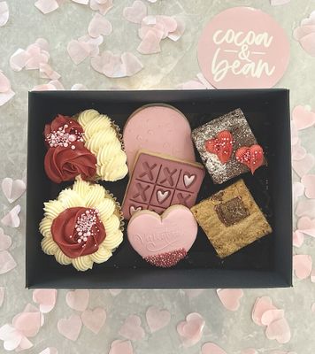 Dessert platter made up of all our best selling items. Box includes: 2 x carrot muffins (halved) 2 x melting moments 4 x mini caramel slice 4 x mini chocolate brownie 1 x lemon, yoghurt & blueberry bread (thirds) topped with strawberries