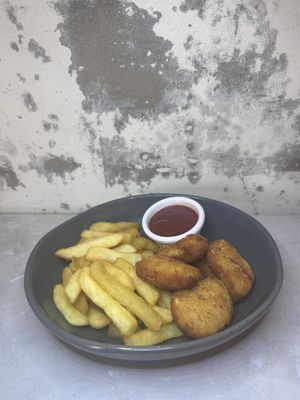 Chips & Nuggets served with your choice of sauce.