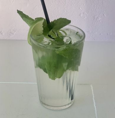A refreshing blend of premium white rum, fresh mint leaves, zesty lime, and delicate mint syrup, gently topped with sparkling soda water