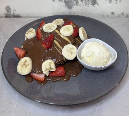 Nutella, strawberries, banana & vanilla ice-cream (GF)