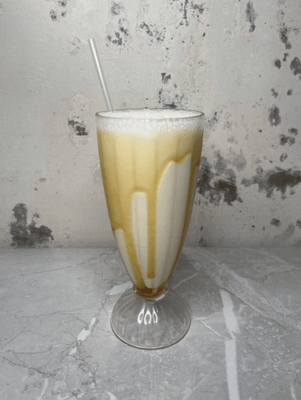 Turmeric blend & ice topped with milk