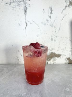 A sparkling blend of cranberry, lemon and raspberry with non-alcoholic cuvee, lemonade and fresh strawberries