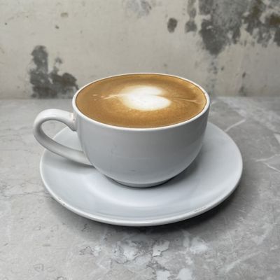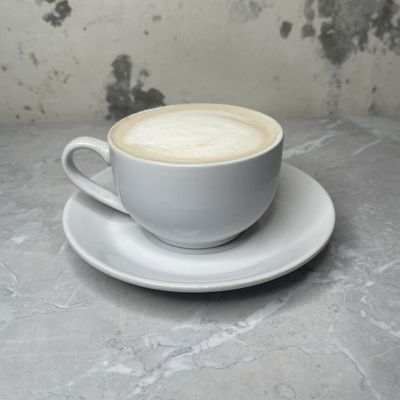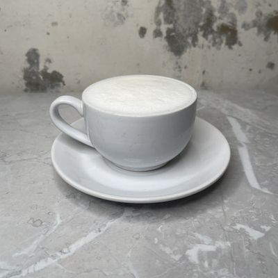 A shot of coffee mixed with white chocolate blend topped with steamed milk & white chocolate sprinkle