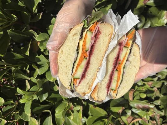 Ham, Grated carrot, Cos Lettuce, Avocado, Tomato, Beetroot relish & Sliced cheese