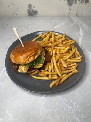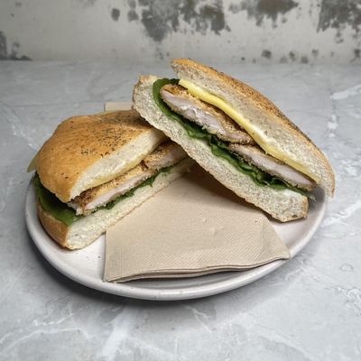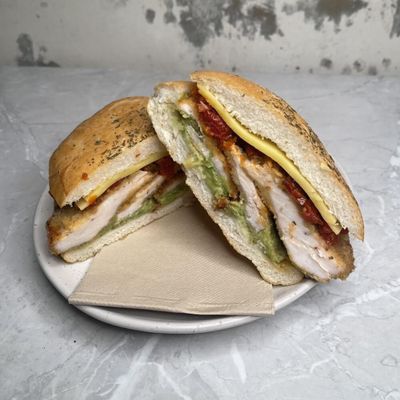 Crispy seasoned Buttermilk Chicken, Grilled Halloumi, Lettuce, Avocado with Cocoa & Bean Sauce