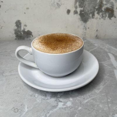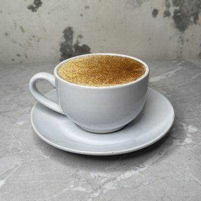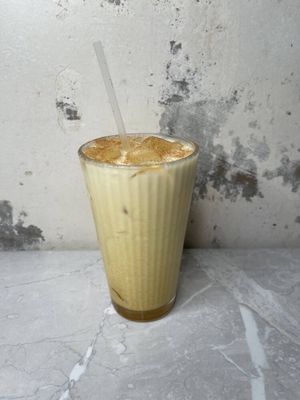 Turmeric blend topped with steamed milk & cinnamon sugar