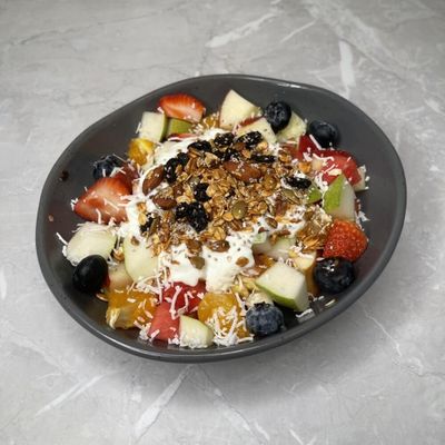 Seasonal Fruit Salad topped with Yoghurt & Homemade Granola