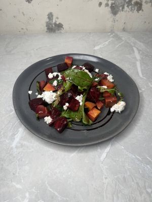 Roast Sweet Potato, Beetroot & Red Onion mixed with Feta, Mixed Salad Leaves with a Honey Mustard Balsamic Dressing GF