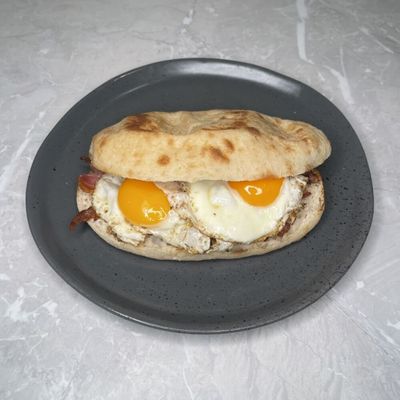 Bacon & Fried Eggs served on a Turkish roll with your choice of sauce - GF available